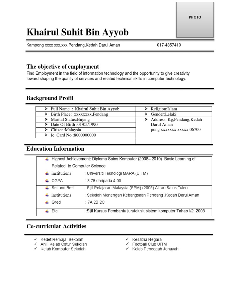 Contoh Format Resume Lengkap Terkini Bahasa Melayu Dan Bahasa Inggeris Index My